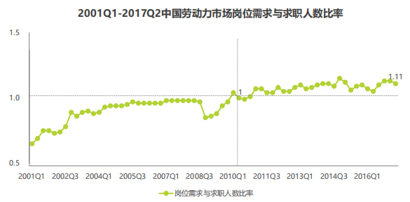 由艾瑞统计数据显示,中国劳动力市场已从供过于求的状态进入供不应求的现状,企业招聘需求增长、招聘难度增加,企业对于高效招聘服务及产品的需求也将随之增长。