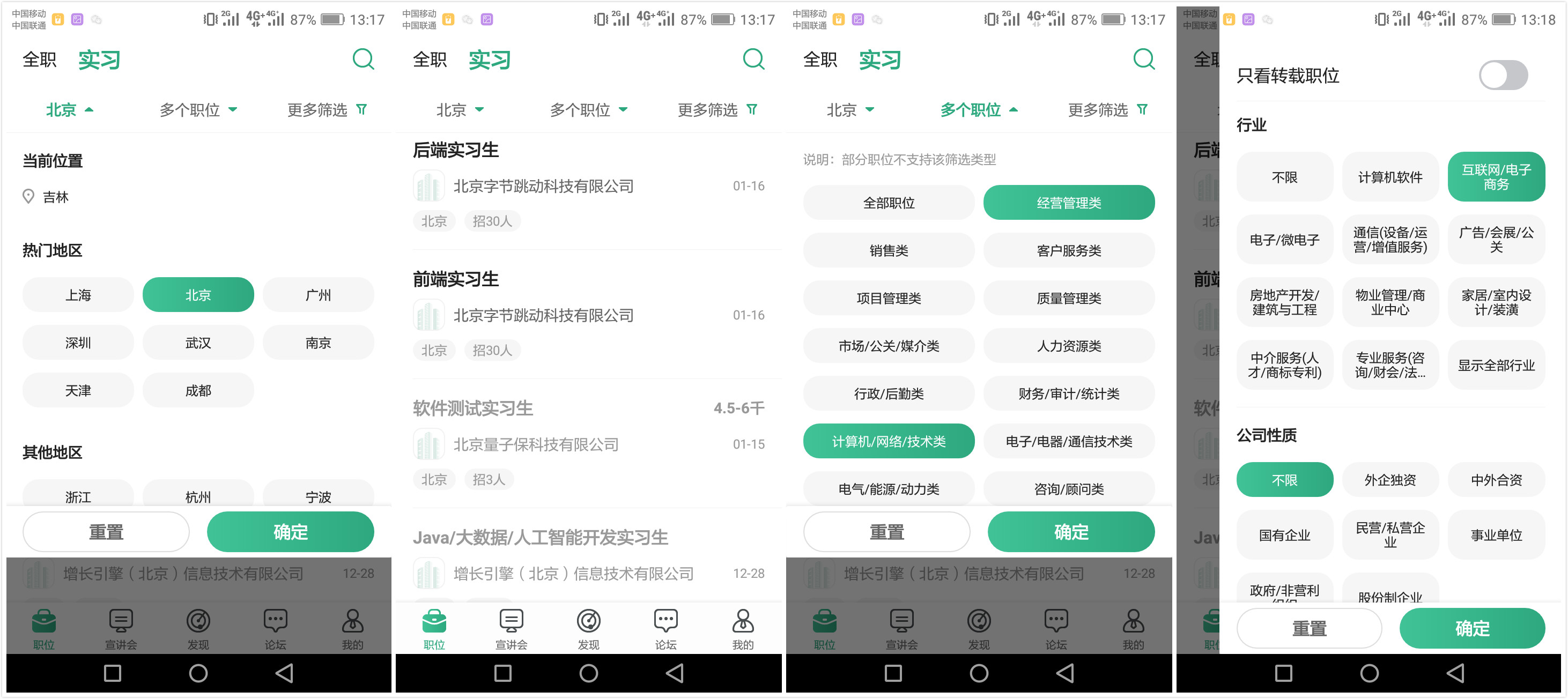 从交互上看:在“实习”选项卡中,页面交互相比较“全职”选项卡没有任何变化