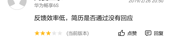 (3)查看应用市场用户反馈得知,招聘信息不够详实,没有面试具体位置。