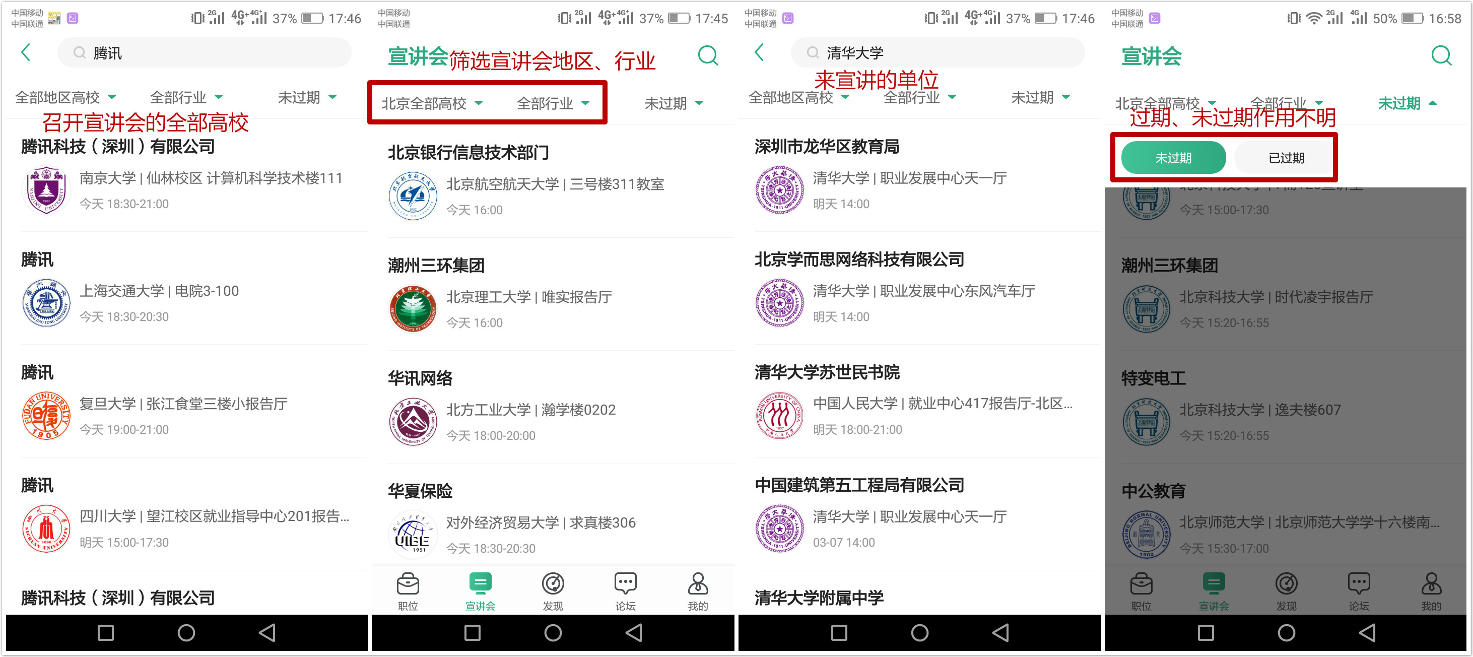从交互上看:在宣讲会筛选选项中设置了“已过期”“未过期”,用户查询宣讲会时一般只查看还没召开的宣讲会,不会关注已经过期的宣讲会,这个功能设计显得有些多余;