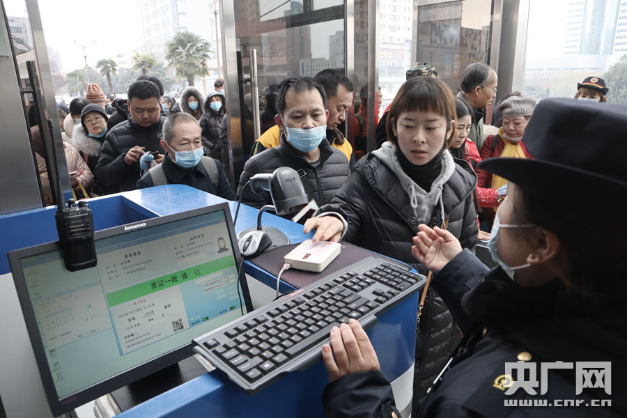 6063次列车旅客正在进站实名验证(央广网发 通讯员王梓杨摄)