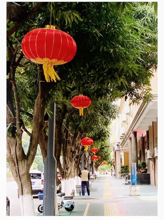 在街边点缀上种种喜庆的红色