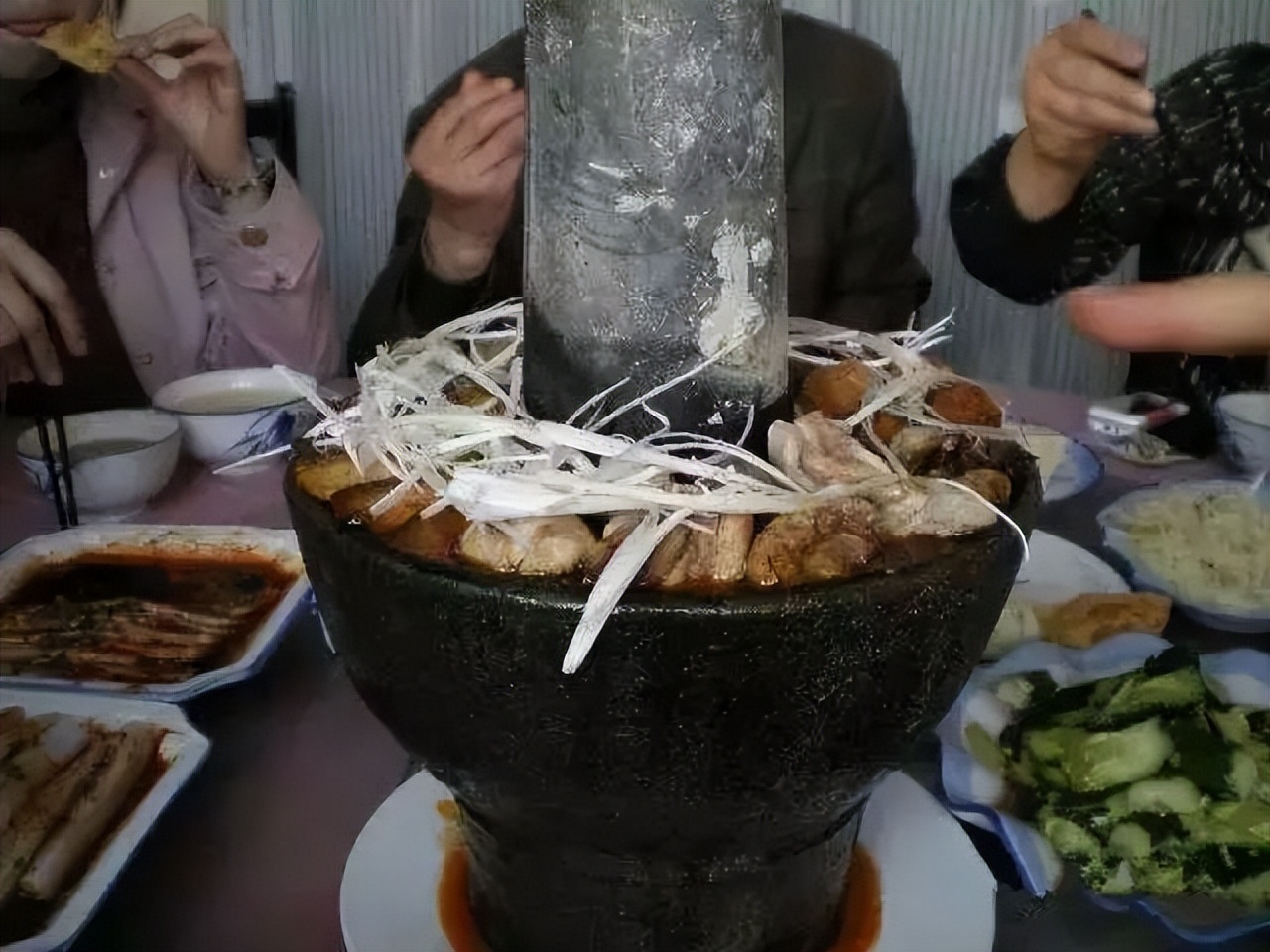 它主要以白萝卜片为主,配以豆芽、粉条、豆腐、红萝卜等,盖面子,即暖锅上面一层是过了油的五花肉。想起来就让人口水直流。在冬天寒冷的天气里,一家人围着它,吃的真叫热火朝天,美味极了。