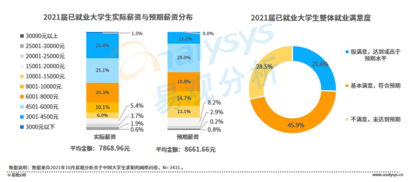 就业现实:实际薪资低于预期水平,但整体就业满意度可观