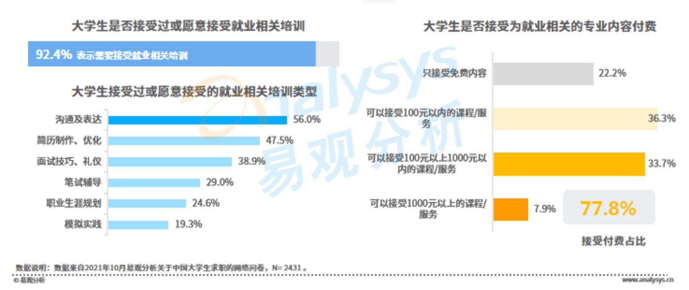 求职培训:大学生求职培训需求强烈,付费意愿较强