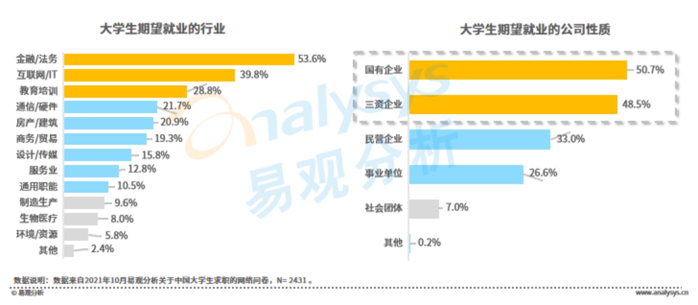 就业期望:新经济行业求职热度高,国有和三资企业吸引力强