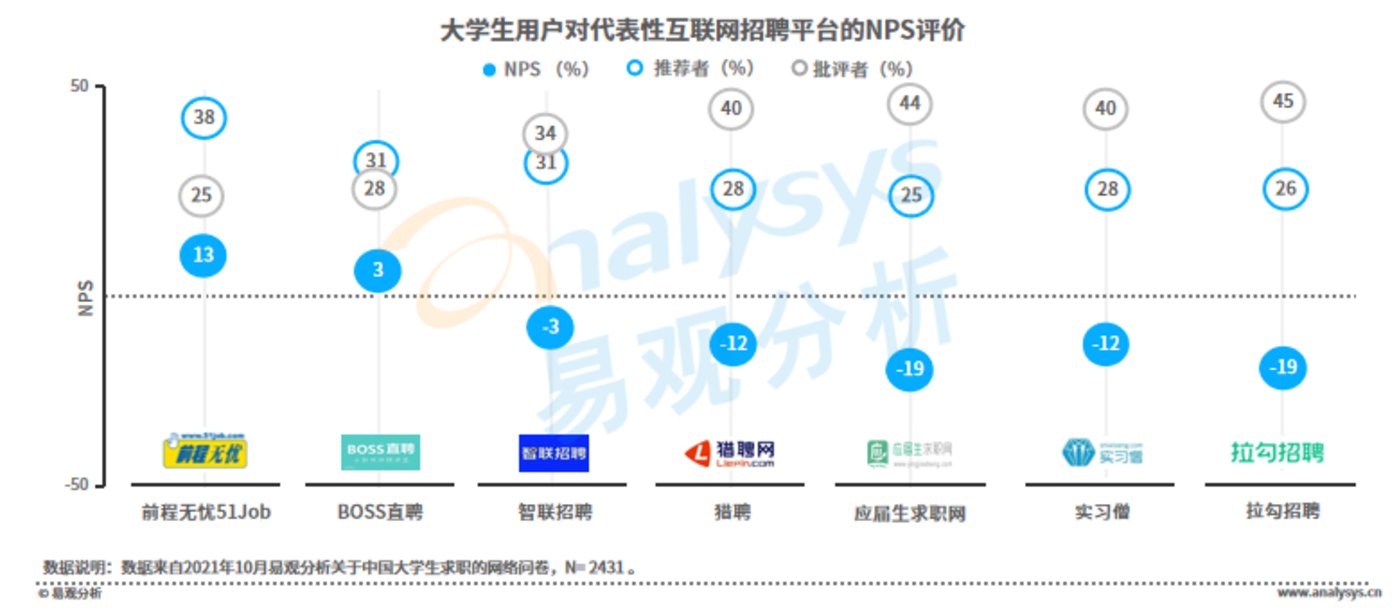 互联网招聘平台NPS整体表现一般,长期用户留存能力待提升