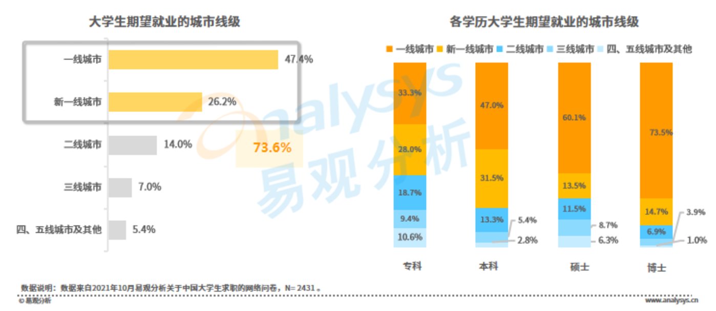 就业期望:经济发达城市吸引力强,高学历人群更青睐一线城市
