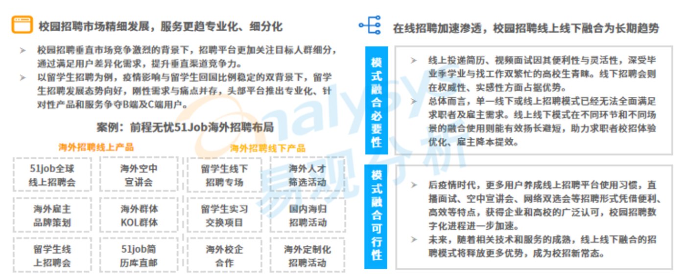 大学生招聘服务专业化、细分化;线上线下融合为长期趋势