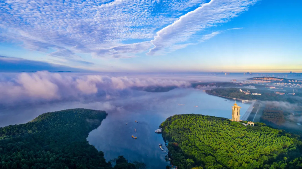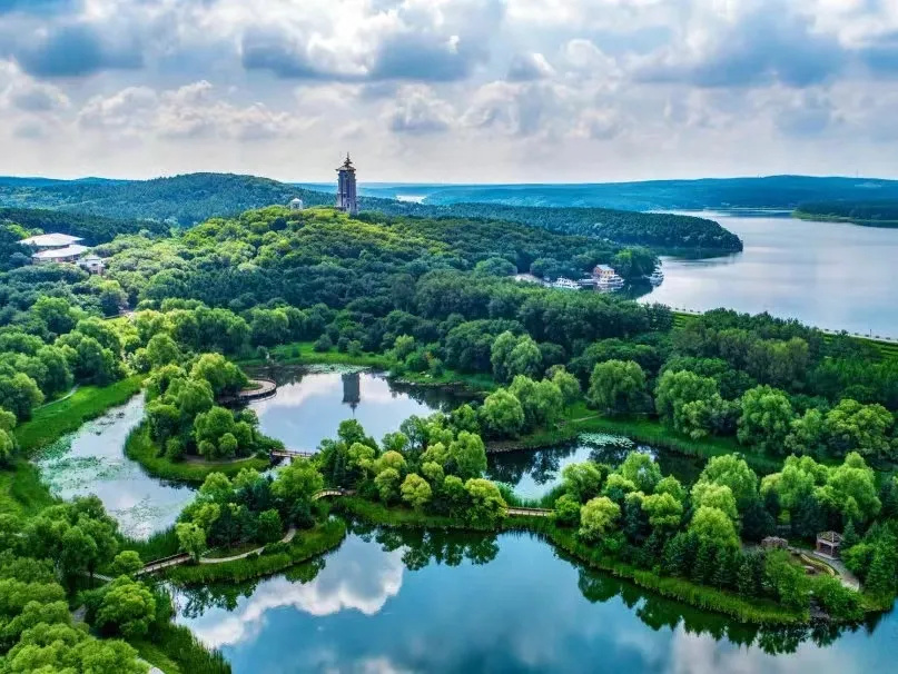 净月潭国家森林公园森林覆盖率达96%,是长春市的生态绿核和城市名片,以其广袤的森林、清澈的潭水和清凉的气候闻名遐迩。