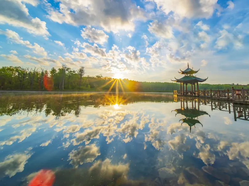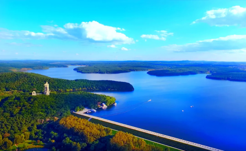 你可以租一艘小船,在湖上漫游,欣赏湖光山色,感受宁静与和谐。净月潭还有许多休闲设施,无论你是运动爱好者还是休闲游客,都能在这里找到乐趣。