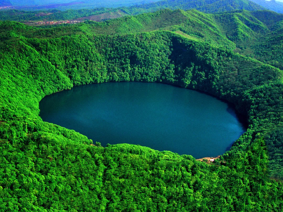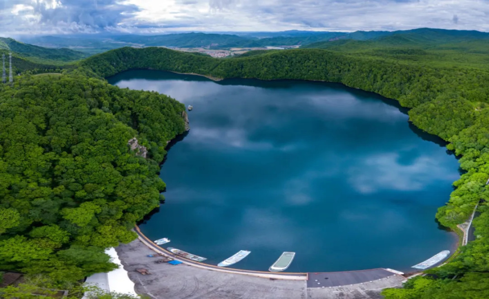 龙湾景区内,七个火山口湖宛如七颗璀璨的明珠镶嵌在崇山峻岭之中,湖水清澈透明,与蓝天白云交相辉映,美不胜收。