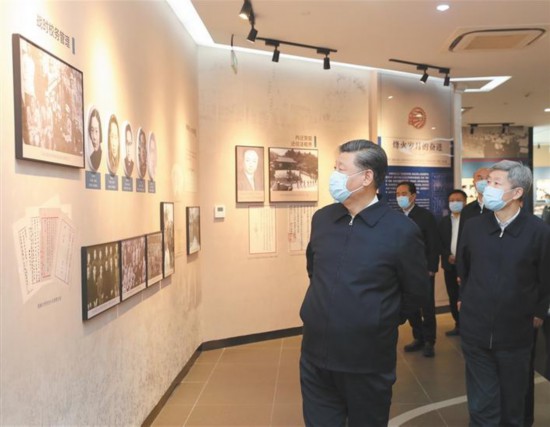 4月20日至23日,中共中央总书记、国家主席、中央军委主席习近平在陕西考察。这是4月22日,习近平在西安交通大学交大西迁博物馆参观。 新华社记者 鞠鹏摄