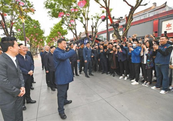 长来长往长安。4月22日,习近平总书记来到大唐不夜城步行街。