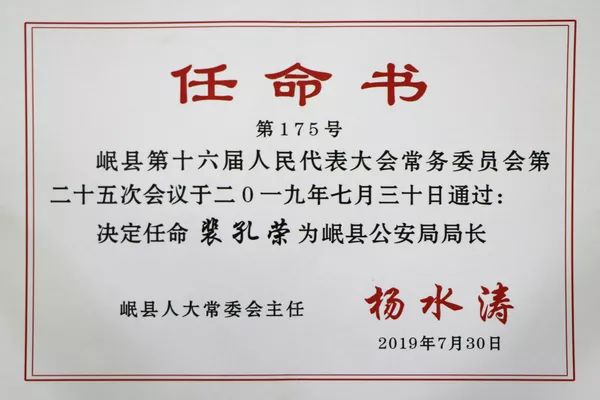 要闻丨裴孔荣同志就任岷县人民政府副县长、公安局局长