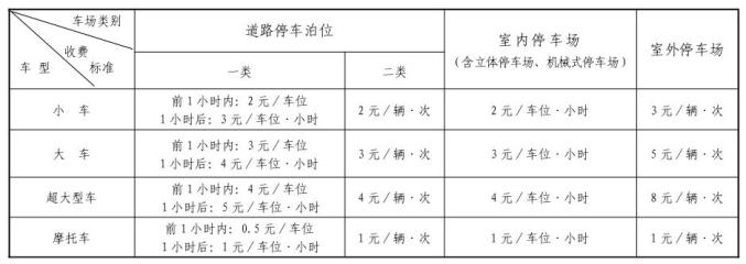 机动车停放服务收费标准