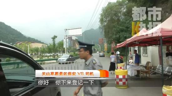 关山草原景区保安:“过路的下来登记一下,给你开通行证,把你车牌号一写,什么时候进去的一写就完了。”