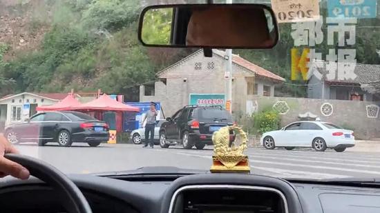 面对保安“下来登记一下”的要求,过路司机也纷纷表示自己觉得这里不应该登记,这是县道,景区没有权利设卡。