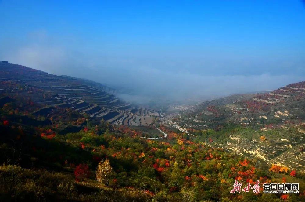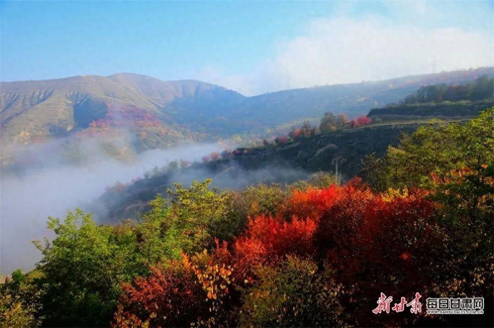 深秋时节,陇西县渭阳乡关庄沟的景色最撩人心,绿叶转黄,枫叶变红,层林尽染,山间云雾缭绕,仙气缥缈,彩林赏心悦目,一步一景,满眼惊喜。