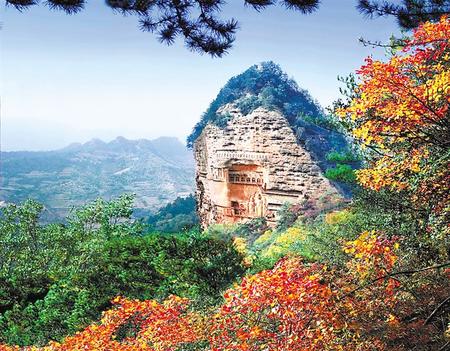 在天水,连绵的秦岭山脉之中,一座鬼斧神工的佛教石窟,神秘、优美地独立在深山的怀抱之中。这就是麦积山石窟。因是小陇山中的一座孤峰,其山形酷似麦垛而得名。麦积山石窟以其精美的泥塑艺术闻名世界,被人们誉为“东方雕塑馆”。麦积山石窟是中国四大佛教石窟之一,最高处离地面近百米。密如蜂房的洞窟之间,全靠架设在崖面上的凌空栈道连接,惊险陡峻极为罕见。麦积山石窟的造像极为精妙,特别是微笑的佛像,这些微笑造像大多塑于北魏及隋唐。在微笑造像中,最负盛名的就是位于133石窟的传神之作——小沙弥,这尊造像被称为“东方微笑”,也称为“麦积山微笑”。