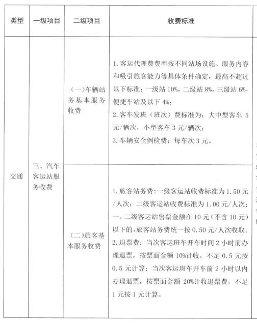 1. 旅客站务费:一级客运站收费标准为1.50元 /人次;二级客运站收费标准为1.00元/人次;一、二级客运站售票金额在10元(不含10元)以下的,旅客站务费统一按0.50元/人次收取。