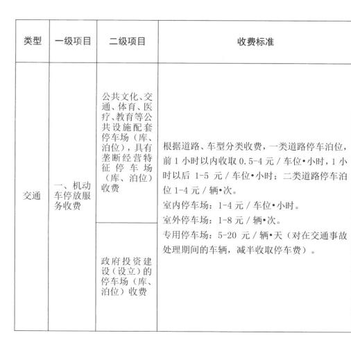 一类道路停车泊位,前1小时以内收取0.5-4元/车位•小时,1小时以后1-5元/车位•小时。
