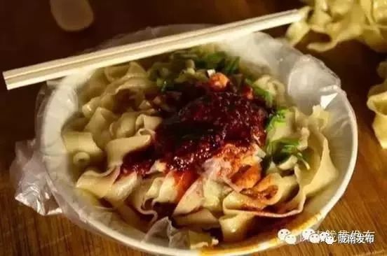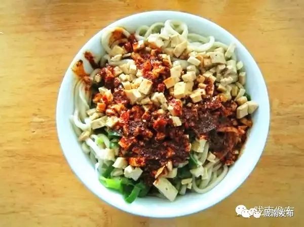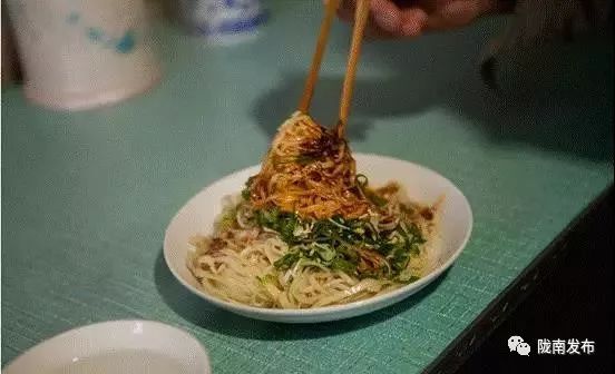 徽县江洛镇的棒棒面是用挂面制作手法,兼容扯面工艺,配小葱、蒜苗、辣子、豆腐丁等佐料,吃来口感独特,每每经过,都会去吃一碗。