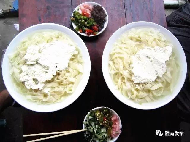 豆花面是文县一种老少皆宜的大众美食,它清香爽口、营养丰富、易消化吸收,吃多了油腻的大鱼大肉,来一碗解腻开胃的豆花面,那才叫安逸呢!
