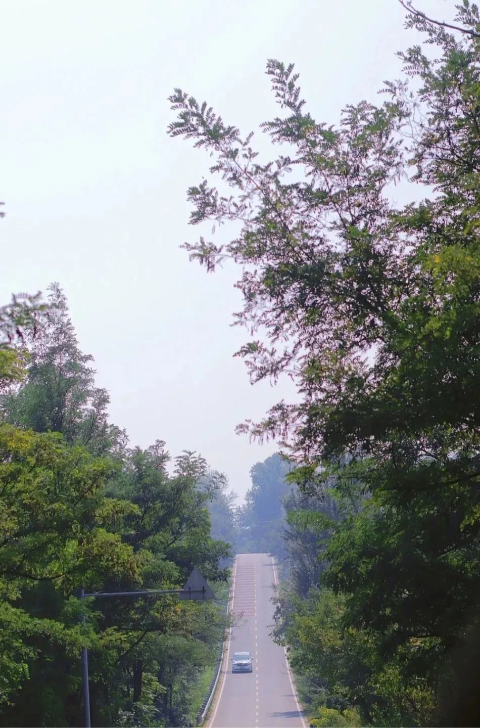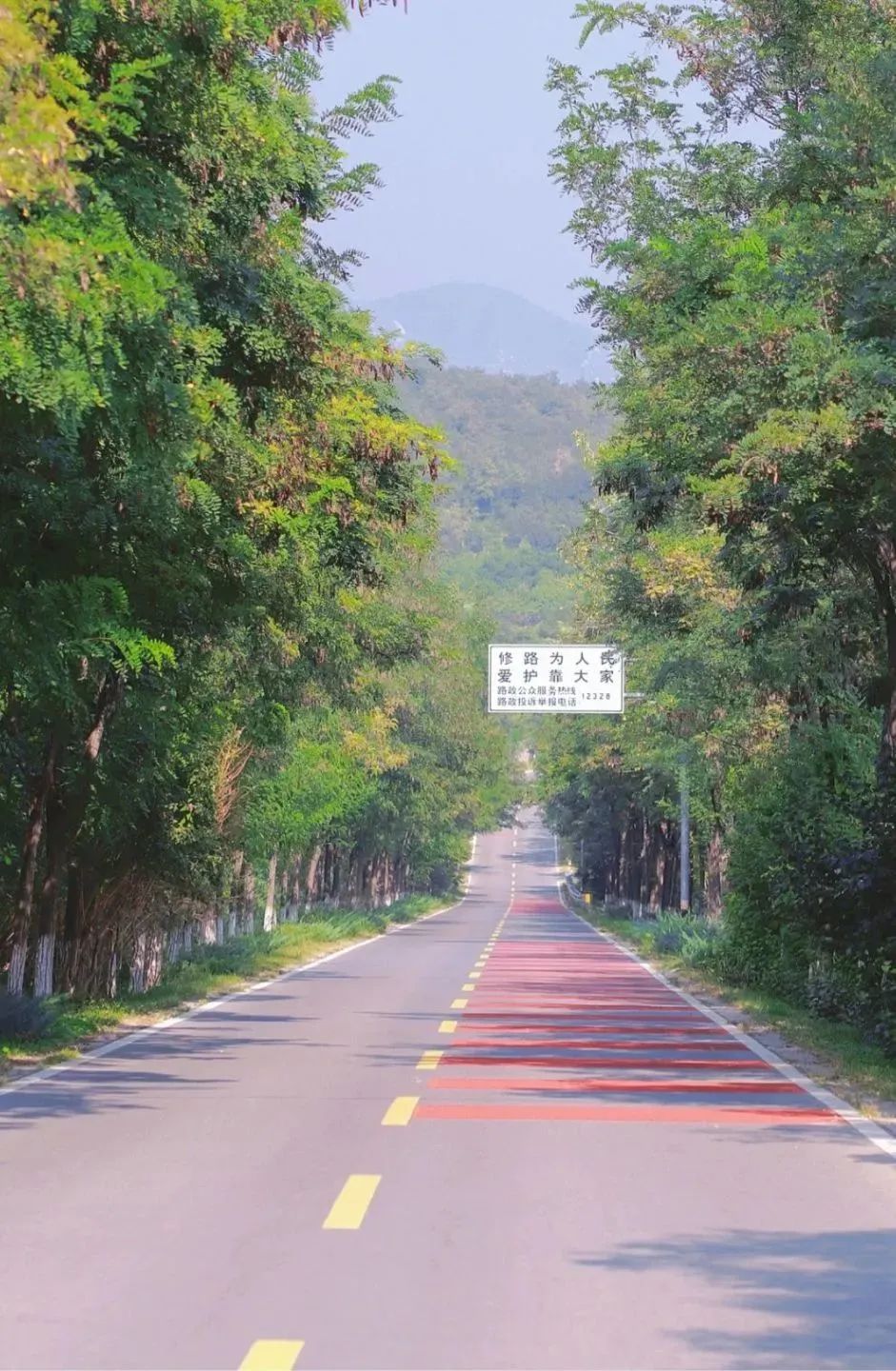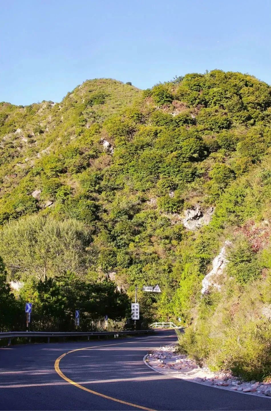 安四路(兴寿-四海段)是依山开辟的道路,道路两旁布满了绿色的植物,尤其到了春夏两季,植被更是茂盛,一步一景。