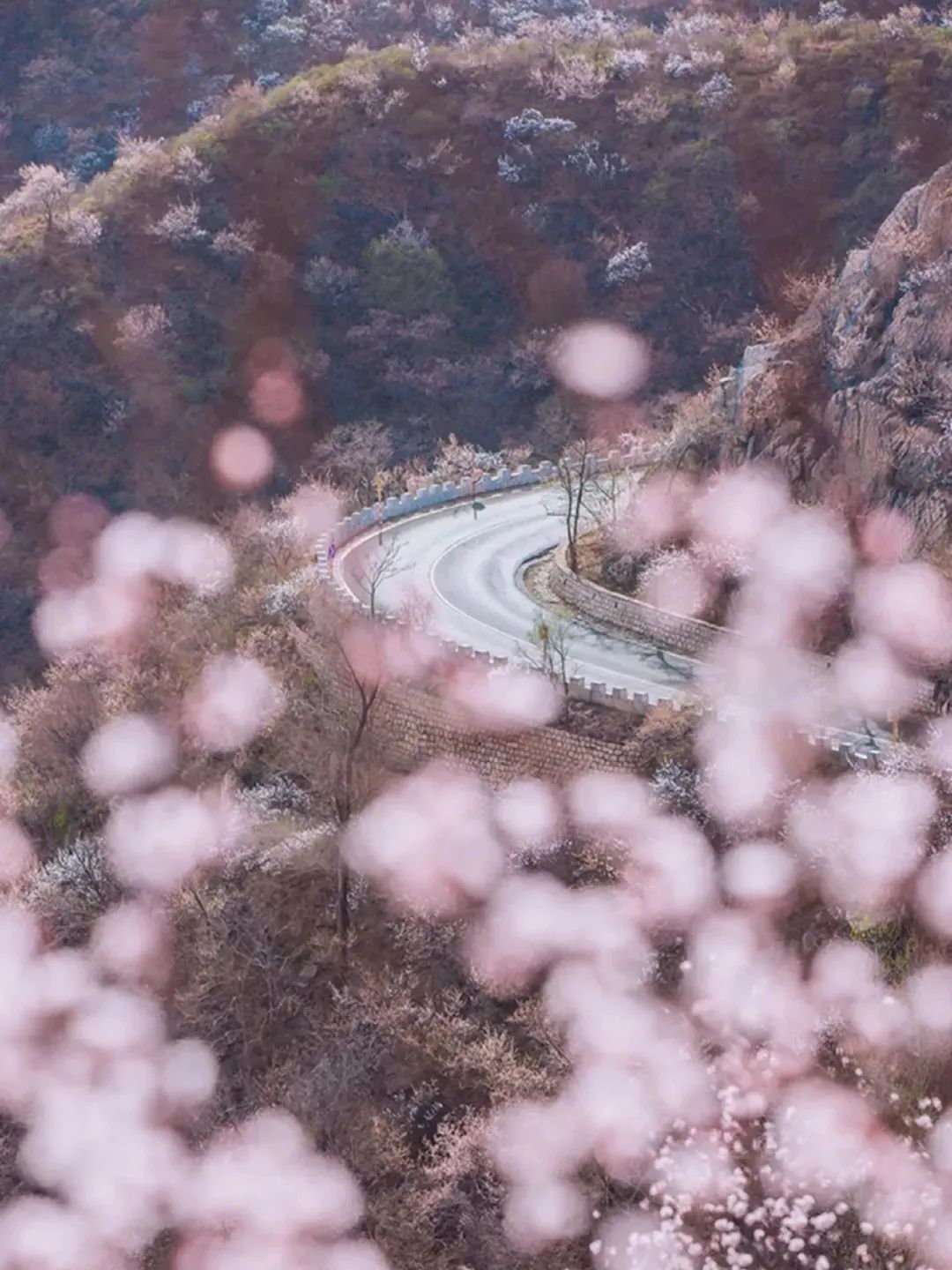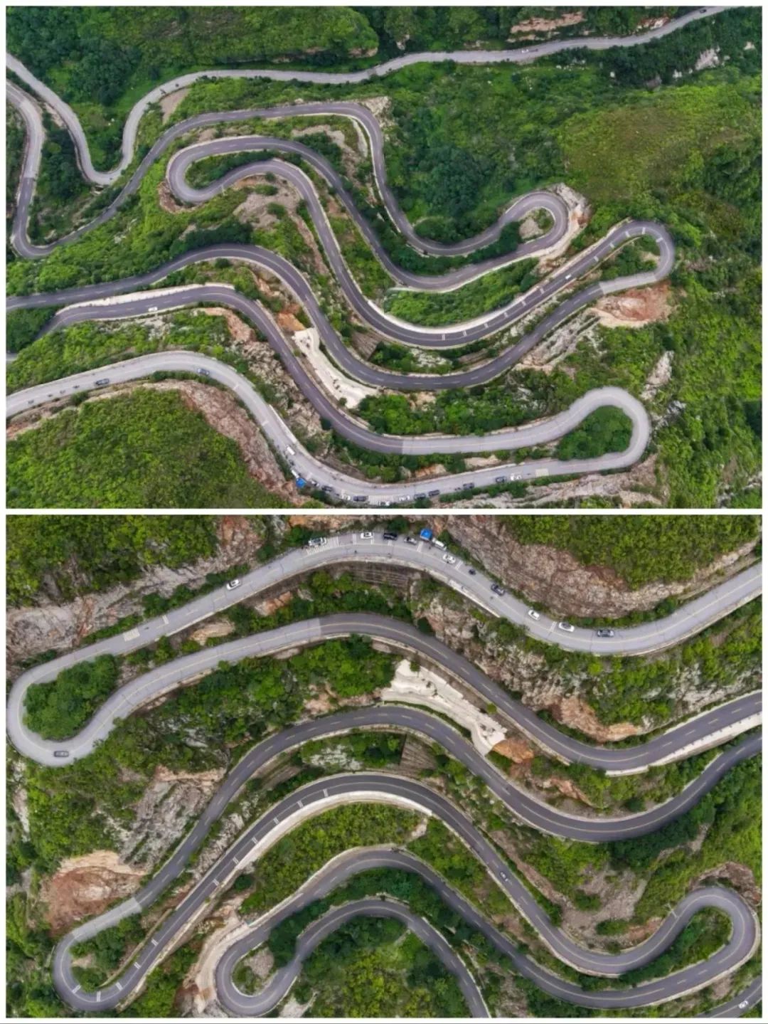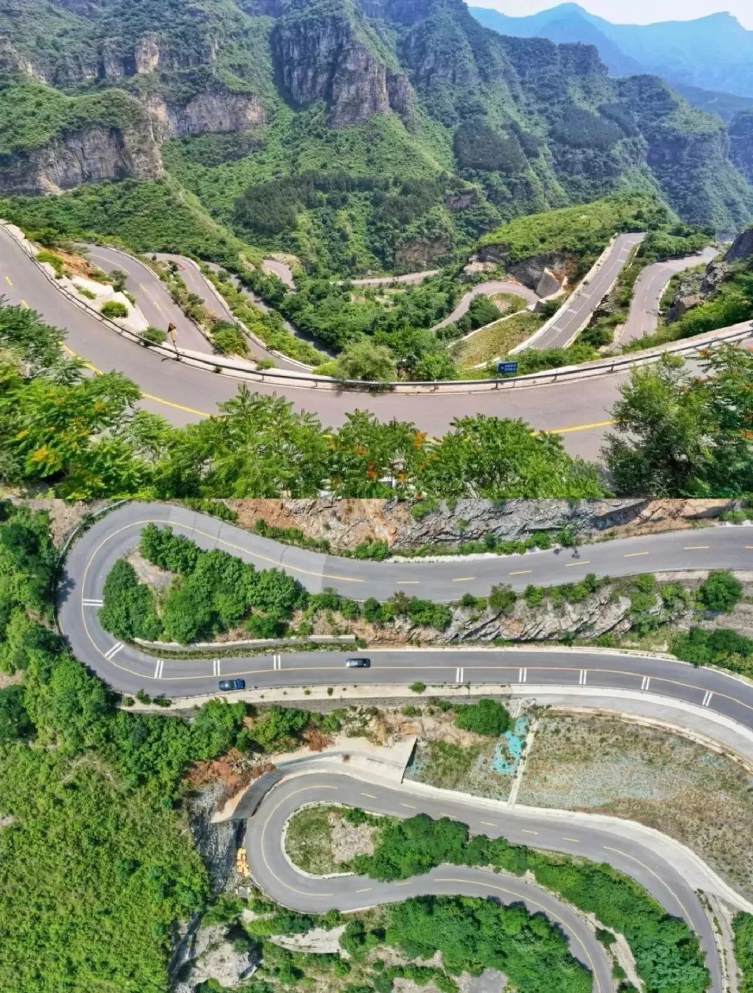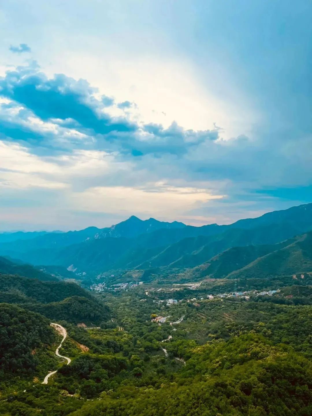 北京境内,从长陵镇开往延庆区大庄科乡的路上全是盘山道,上到山顶再下到山脚。局部路段一侧是山,一侧是山谷,视野开阔,景色壮观。