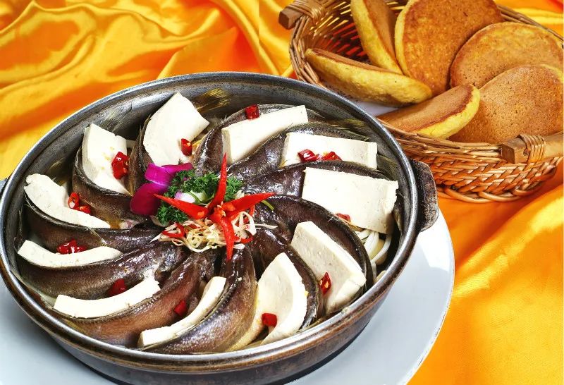 其肉质鲜嫩,鲜香可口,搭配玉米饼,充分体现渔家风味。