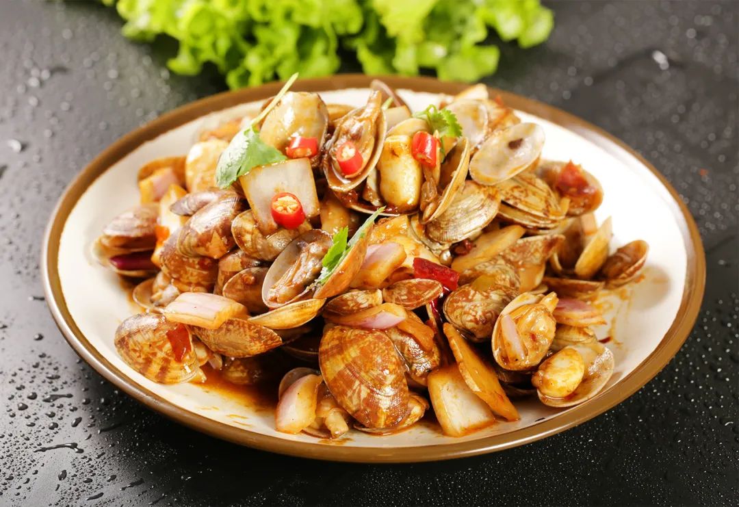 辣炒蛤蜊是青岛人的挚爱,新鲜蛤蜊肥嫩多汁,适于下酒。