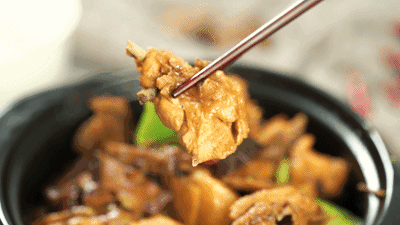 当那黑色砂锅端上桌时,锅中的热气夹杂着肉香,舀一勺浓郁的汤汁淋在晶莹剔透的米饭上,能瞬间满足你那饥肠辘辘的肚子!