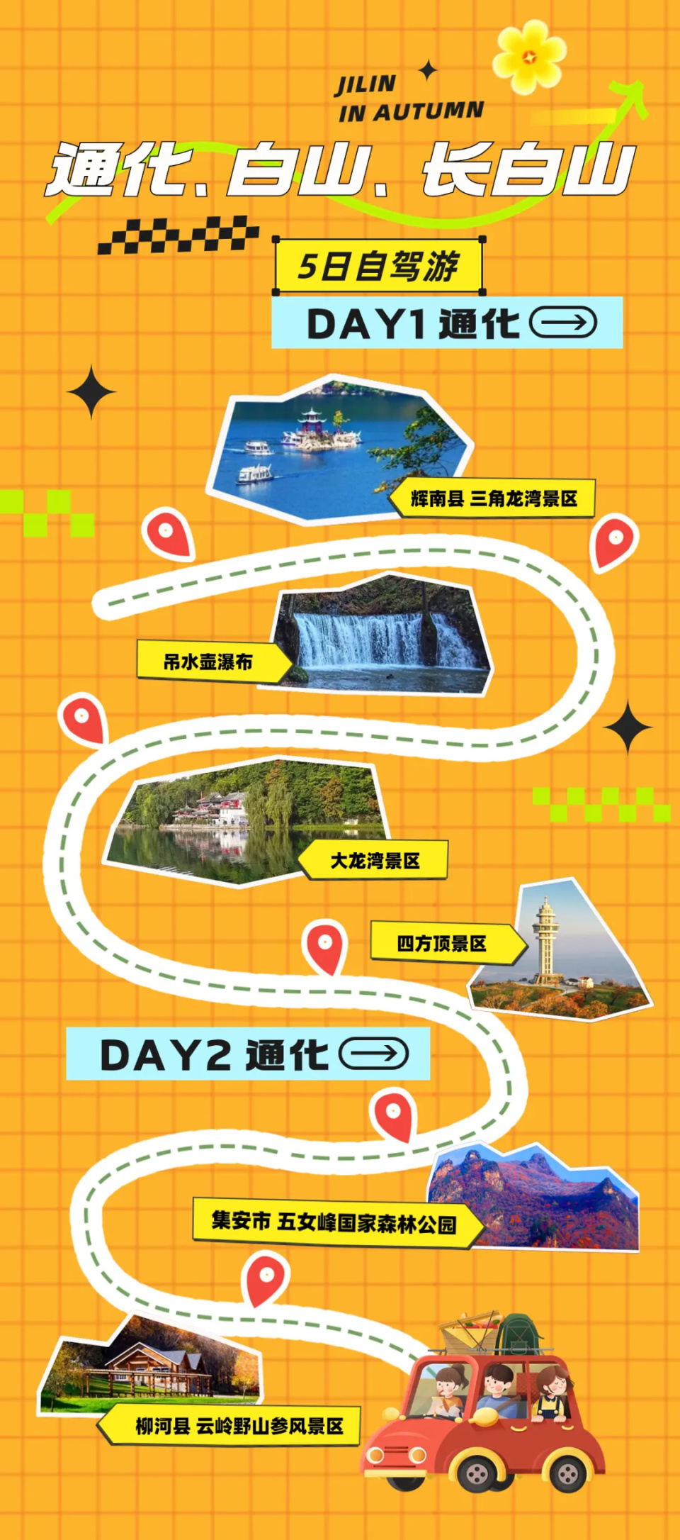 沿途景点推荐:鸭绿江国门景区、西夹荒生态旅游度假区、太极湾、龙兴里文旅小镇、集安大吉他广场