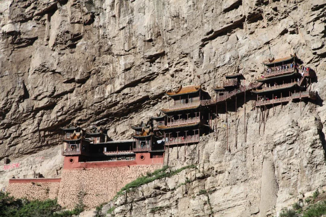 这是一座悬挂在峭壁之上的木质瑰宝,历经1500多年的风雨沧桑,仍屹立不倒,被称为天下奇观!整座寺庙全为木质结构,依靠巧夺天工的技艺,稳稳的悬于万仞峭壁之间,十分壮观,漫步在空中楼阁,不禁感叹古人的智慧。