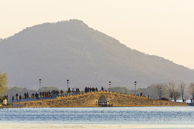 西湖断桥位于杭州北里湖和外西湖的分水点上,一端跨着北山路,另一端接通白堤。桥畔有“云水光中”水榭和断桥残雪碑亭,断桥残雪景观内涵说法不一,一般指冬日雪后,桥的阳面冰雪消融,但阴面仍有残雪似银,从高处眺望,桥似断非断。伫立桥头,放眼四望,远山近水,尽收眼底,是欣赏西湖雪景之佳地,断桥残雪为西湖十景之一。 【 详细>>】