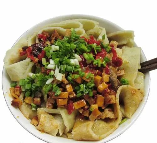 因制作的成品跟自家用锅做饭时蒸出的锅巴过程相似,故名之曰“锅巴粉”,制作过程为将大米、绿豆、青菜,分葱,蒜叶萝卜叶等做成的浆在锅里烙成饼,然后冷却卷成卷,卷可以切丝。“锅巴粉”易熟,口感熔实,含有大米、青菜、绿豆,分葱,蒜叶萝卜叶等特有的清香味,营养健康、无添加剂。