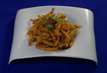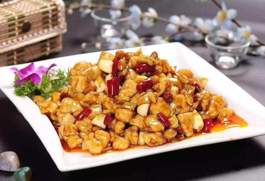 织金宫保鸡丁选用鸡肉为主料,佐以花生米、黄瓜、辣椒等辅料烹制而成,是一道本地的特色传统名菜。红而不辣、辣而不猛、香辣味浓、肉质滑脆。由于其入口鲜辣,鸡肉的鲜嫩配合花生的香脆,使其更为食客所青睐。