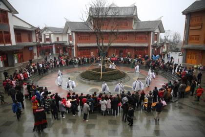三幺台,就是席分三台,即茶席、酒席、饭席。近年来,一些对这一饮食习俗感兴趣的研究者,替这三轮席面取了富有传统文化气息的名字,分别叫“接风洗尘” “八仙醉酒” “四方团圆”。三幺台作为仡佬族人家待客的最高食俗礼仪,其间无论是主客入座的座位,还是餐桌上碗碟的摆盘,都有特定的礼仪和规矩。