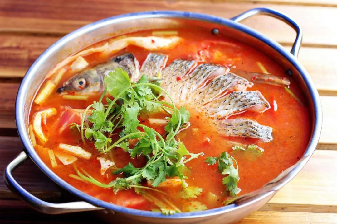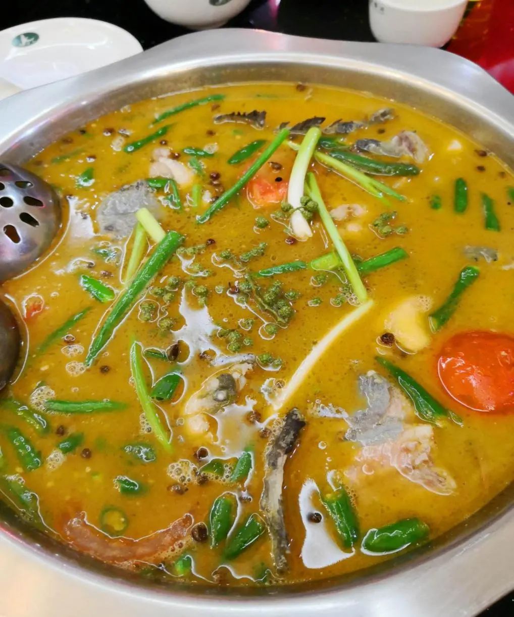 始创于1993年的“老凯俚酸汤鱼”,传承了贵州苗族先辈传统的制酸古法,并通过对贵州苗族饮食方式的不断研究,选用贵州本地独有野生毛辣果,土坛发酵一年制作毛辣果酸,选用本地红线椒制作糟辣酸混合调制。
