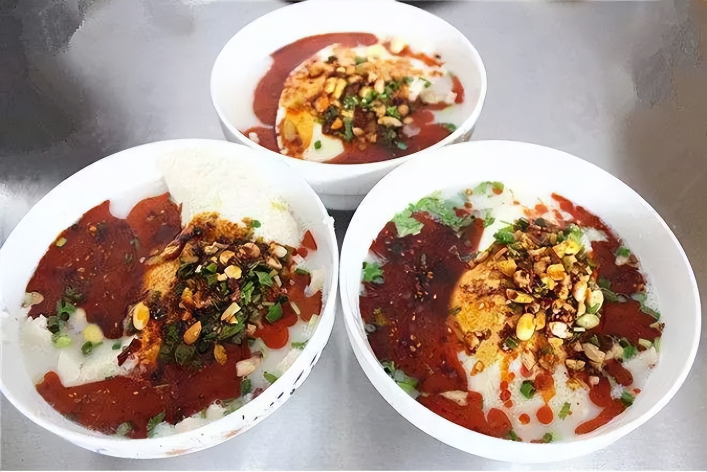 江洛镇的棒棒面中最主要的配料就是豆腐丁,豆腐用传统手法制成,外皮微黄,细而硬,炒出的豆腐丁香酥味美,而且不易碎,鲜红的油拨辣子、翠绿的葱花、干香微黄的豆腐丁,再配上做法独特的棒棒面条,干拌调好,让佐料裹着每一根面条,每一口都味道十足。