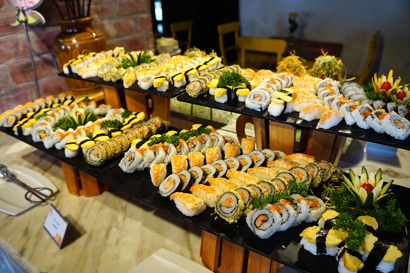 沙拉、火腿、冷盤、烤雞、蝦子、中式熱食、義大利麵、烤肉、海鮮…等,選擇不能跟大飯店比,但以三百塊台幣左右的價格來說,我覺得蠻值得的。