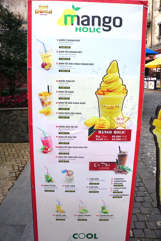 Mango Holic 販賣各種新鮮水果的果汁、冰沙、果昔Smooth、酸奶昔(Lassi),有芒果、百香果、檸檬、柳橙、草莓、鳳梨等多種口味,大部分價位都在70,000VND~75,000VND。這裡也有新鮮椰子可以買(70,000VND)。 (點此看價目表)
