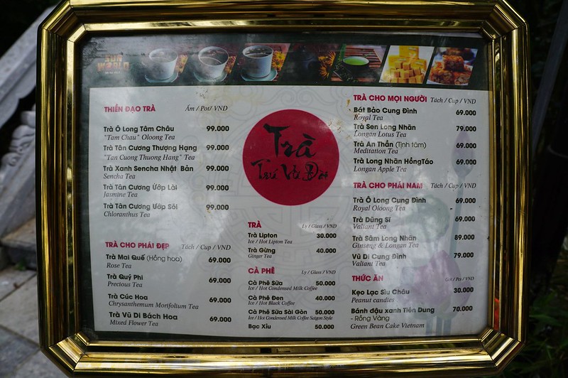 立頓紅茶30,000VND,薑茶40,000VND,杯茶69,000~89,000VND,整壺的茶99,000VND,也有咖啡(40,000~50,000VND) 以及配茶的點心,像是綠豆糕、花生。