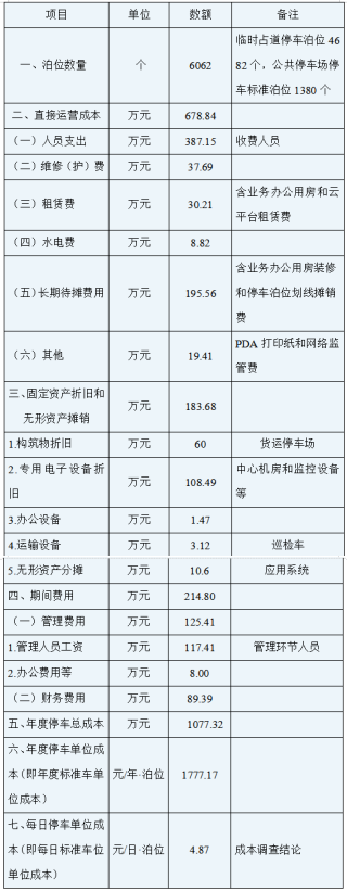 本次实地调查审核,对仪陇县绅雅科技有限公司运营的仪陇县城区机动车停放服务(含城区机动车临时占道和公共停车场)相关的项目投资、运营成本、期间费用等各环节成本支出予以详细调查、审核,按照有关规定和标准核增或核减了应计入和不应计入定价成本的费用。具体成本调查情况详见下表。
