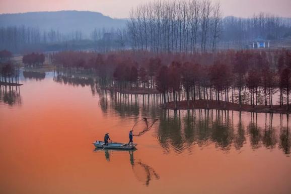 ▲ 江苏淮安盱眙县天泉湖的秋季捕鱼场景。