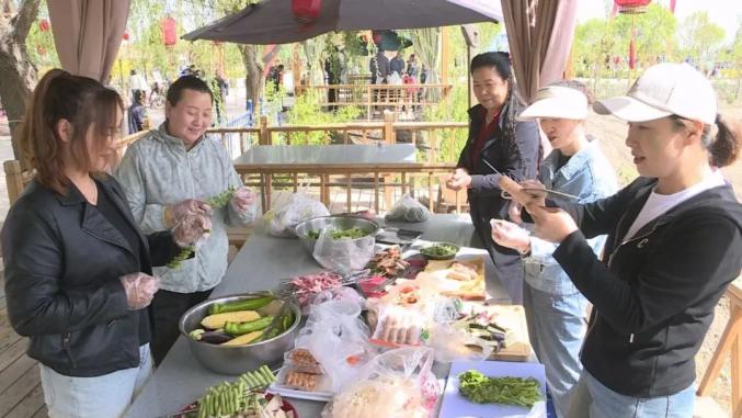 在甘浚镇速展街区,刚到上午十点多,便陆续有市民游客前来,在这里可以欣赏到精彩的歌舞表演,品尝张掖本地特色美食,体验乡村生活乐趣,好一番热闹场景。