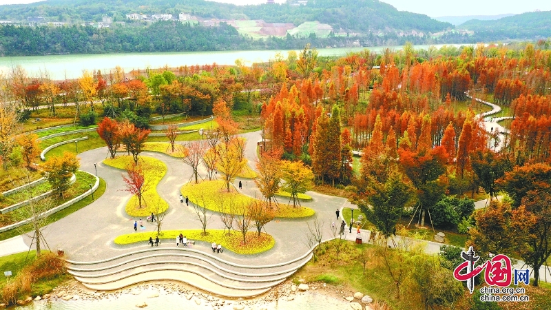 冬日里的南部县禹迹岛公园层林尽染,吸引市民观光、休闲