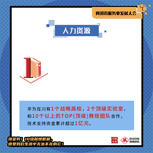 四川拥有大量科研院所,培养出众多科技人才,也吸引了大量科技型企业在川落户。以华为为例,华为成都研究所目前员工已超过1万人,同时拥有全球存储总部、5G网络研发中心。目前华为在川有1个战略高校,2个顶级实验室,和10个以上的TOP(顶级)教授团队合作,技术支持资金累计超过1亿元。