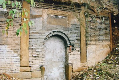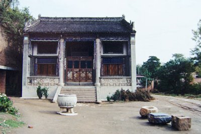 石鼓寺中一座三开间的殿,只有殿脊上的砖雕是旧的,其余的都是新物,寺的门口有一块宝鸡市人民政府立的石鼓山的石碑,看过石鼓寺后开始上石鼓山寻找石鼓的出现地。